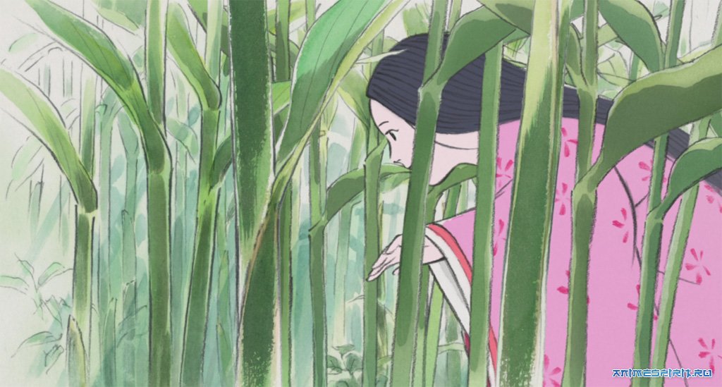 Описание: Найденная в стволе бамбука, Кагуя обладала невиданной красотой, за что родители называли её «принцессой» и «даром небес». Девочка быстро росла и становилась только краше. Старик, воспитывающий её, бродя по лесам находил бамбук, срезав который, обнаруживал там то золото, то драгоценные ткани. Решив, что такова воля небес, он отправился в столицу, где на найденные сокровища отстроил дворец и нанял лучших слуг. Позже, когда Кагуя подросла, он перевёз туда и её, где та росла и училась грамоте и этикету у лучших учителей.