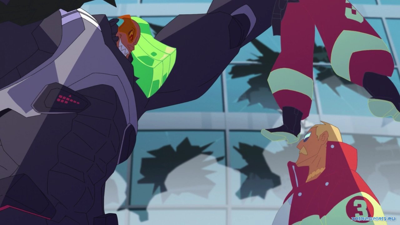 Как в овашках гуррен-лагана, ибо даже Лео-Вирал присутствует, хотя актер озвучки другой, но голос явно выбирали похожий, потому что сам перс явно отсылает к Виралу. Хотя, голос, кажется, другой и он в паре моментов наиболее слабый из всех персов первого плана. И в персах Промара мы можем легко узнать каждого из героев. Не говоря уже о куче явных отсылочек к килакилу и Гуррен-лагану.