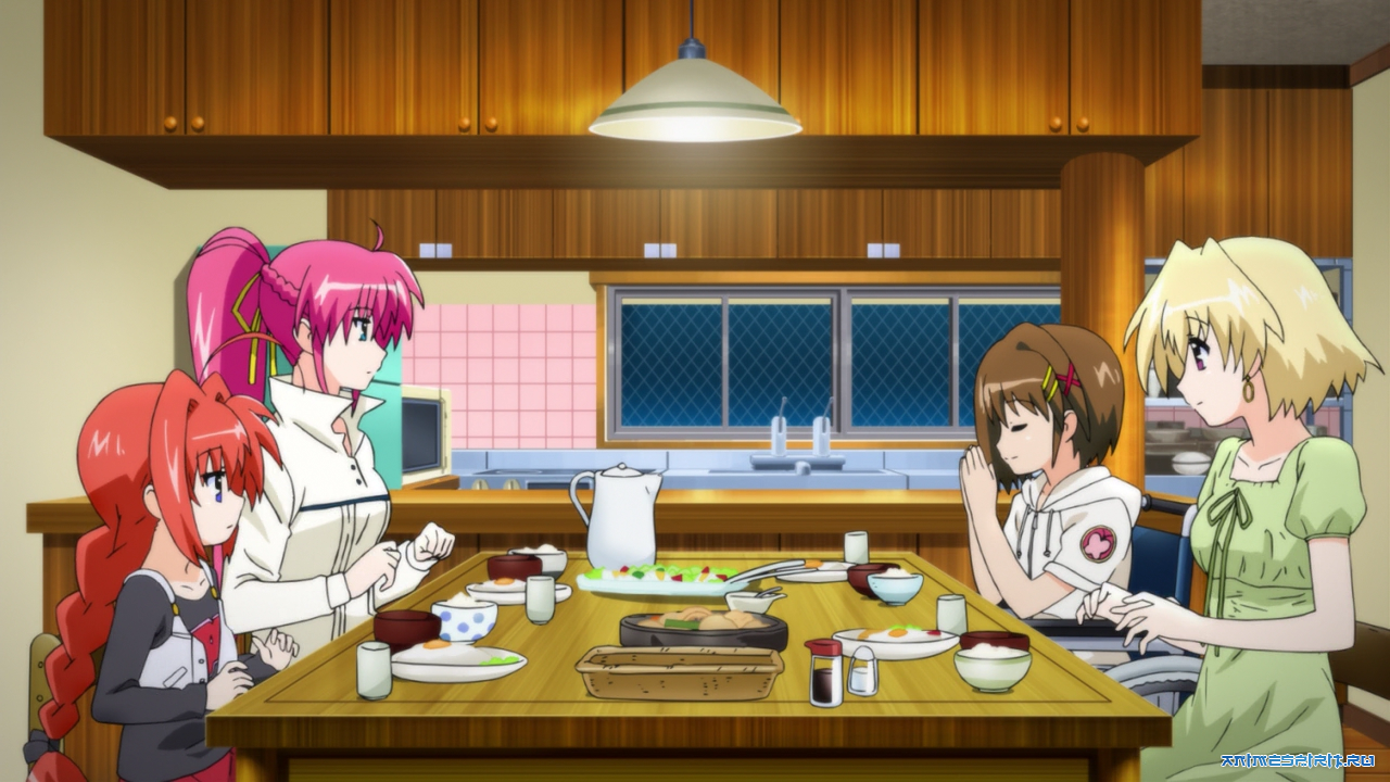 #01 Сердечный треугольник OVA-1 - OVA (5 эп.), адаптация игры, 2000 #02 Сердечный треугольник OVA-2 - OAV (4 эп.), адаптация игры, 2003 год#03 Лиричная волшебница Наноха [ТВ] - ТВ (13 эп.), spinoff (ответвление сюжета), 2004 год#04 Лиричная Волшебница Наноха: Асы - ТВ (13 эп.), продолжение, 2005 год#05 Лиричная Волшебница Наноха: Искатели - ТВ (26 эп.), продолжение, 2007 год#06 Лиричная волшебница Наноха (фильм первый) - п/ф, ремейк, 2010 год#07 Лиричная волшебница Наноха (фильм второй) - п/ф, альтернативная версия, 2012#08 Лиричная волшебница Наноха: Вивио - ТВ (12 эп. + эп.-коллаж), продолжение, 2015 #09 Решающий удар! - ТВ (12 эп. + 3 спэшла), продолжение, 2016 #10 Лиричная волшебница Наноха: Отражение - п/ф, продолжение, 2017 #11 Лиричная волшебница Наноха: Детонация - п/ф, продолжение, 2018