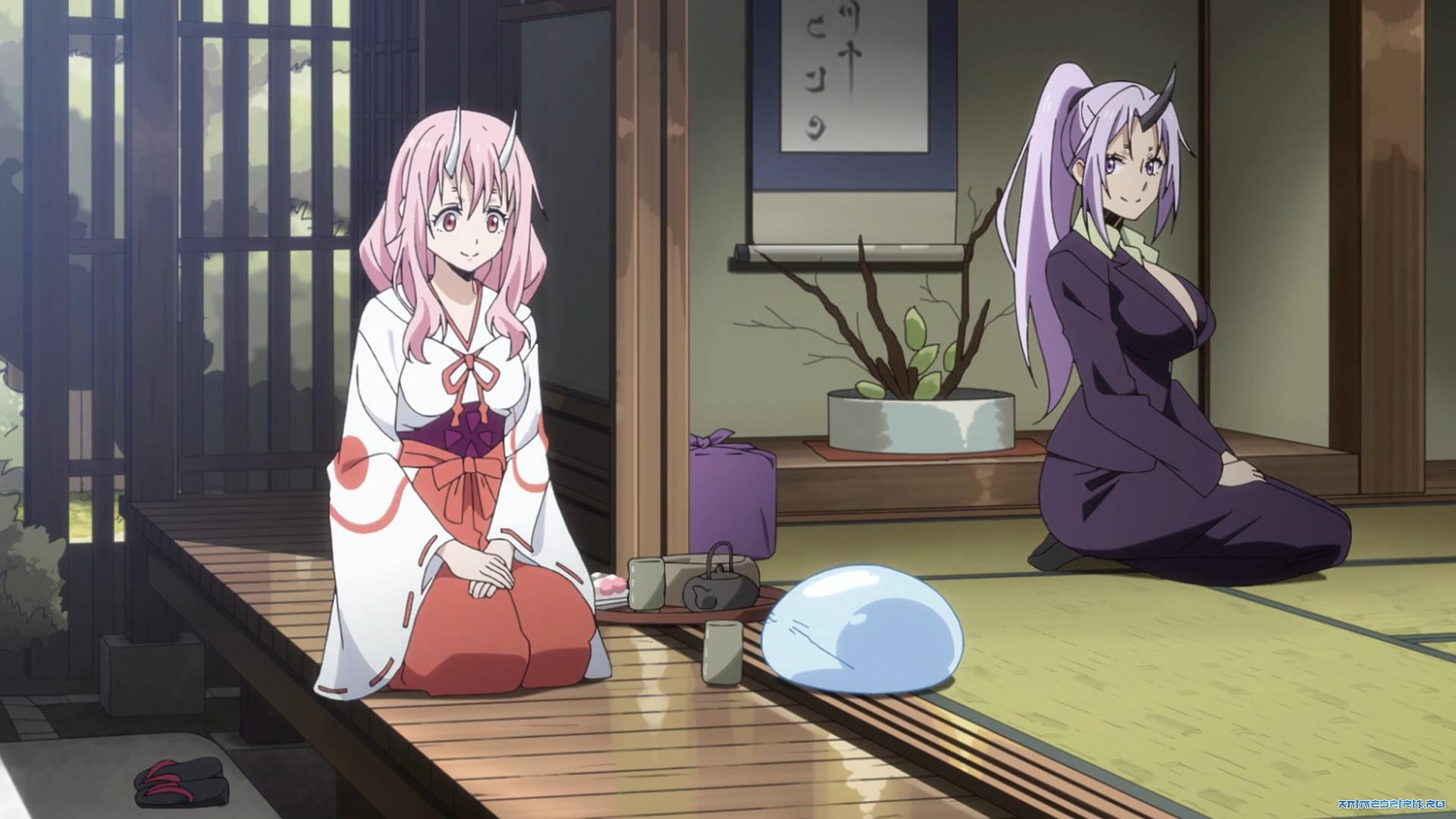 #01. О моём перерождении в слизь [ТВ-1] - ТВ (24 эп. + спэшл), адаптация ранобэ, 2018#02. О моём перерождении в слизь OVA - OVA (5 эп.), адаптация ранобэ, 2019#03. О моём перерождении в слизь [ТВ-2] - ТВ (24 эп.), продолжение, 2021 #04. Дневник слизи - ТВ (12 эп.), адаптация манги, 2021 #05. О моём перерождении в слизь (фильм) - п/ф, адаптация ранобэ, 2022 #06. О моём перерождении в слизь OVA - OVA (3 эп.), адаптация ранобэ, 2023#07. О моём перерождении в слизь [ТВ-3] - ТВ (24 эп.), продолжение, 2024#8 О моём перерождении в слизь [ТВ-4] - ТВ, продолжение, 2025