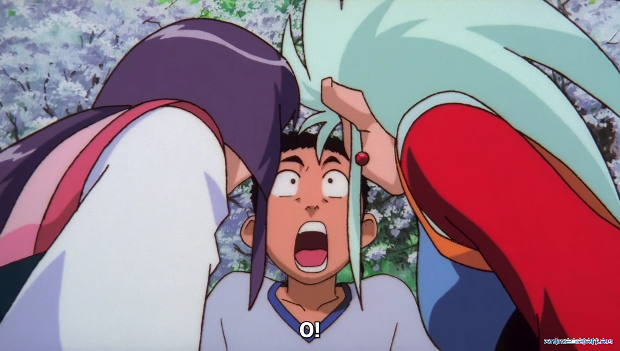 Описание: Устав от перебранок Рёко с Аэкой, Тенти убегает в храм Мисаки, дабы хоть немного насладиться покоем. Но после таинственной встречи в лесу неподалёку от храма пропадает в неизвестном направлении. Рёко и Аэка сразу же бросаются на поиски. И вот, спустя шесть месяцев безуспешных поисков они всё-таки наконец находят Тенти. Всё это время он находился в ином мире с незнакомой женщиной. Вся беда в том, что герои не имеют ни малейшего представления, ни как попасть в тот мир, ни кто эта таинственная незнакомка, похитившая их ненаглядного. Да ещё и сам Тенти, как назло, потерял память и ничего не помнит о своём прошлом. В конце концов героям удаётся найти путь в мир, где пребывает Тенти. Но получится ли у них спасти его и вернуть ему память?