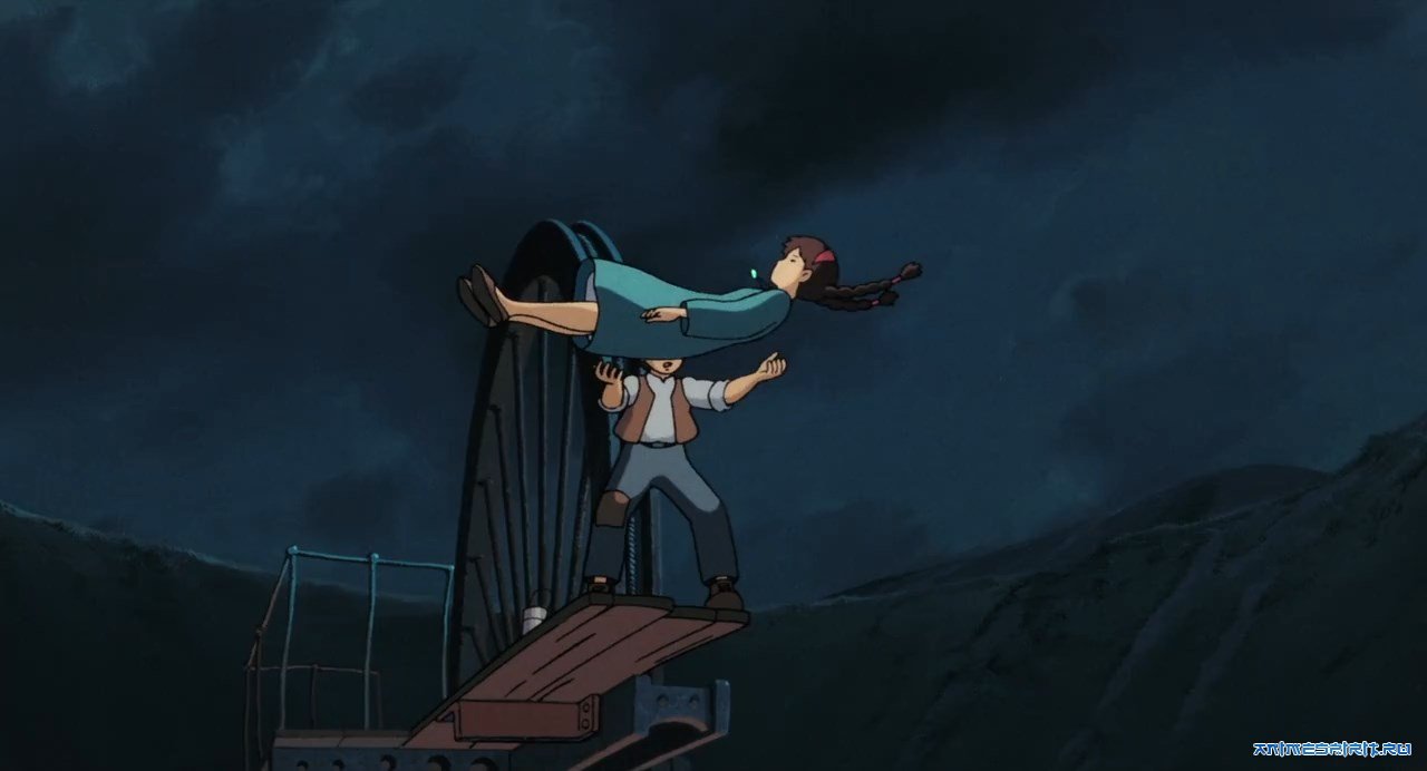 Описание: Альтернативная реальность, напоминающая викторианскую Европу начала бурного развития научно-технического прогресса. Юный Падзу, подмастерье инженера, отвечающего за исправную работу подъёмника шахты, случайно знакомится с загадочной девочкой с косичкой, буквально упавшей с неба прямо ему в объятия. Оказывется, за незнакомкой гонятся по пятам воздушные пираты, армия и правительственные агенты, пытаясь заполучить хранящийся у неё Летающий Камень, который является ключом к мифическому летающему острову, некогда принадлежащему давно погибшей древней цивилизации. Так начинаются увлекательные приключения двух детей, в ходе которых они открывают тайну Небесного замка Лапуты...