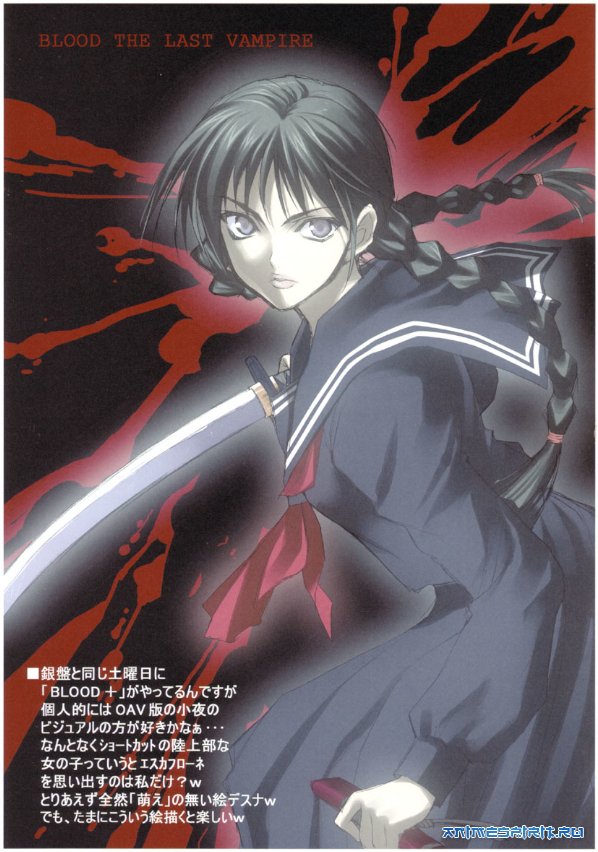 Описание: Беспощадные твари, чудовища, живущие под личиной людей лишь для того, чтобы питаться их кровью. Но к счастью, человечество тоже не дремлет, и есть группы людей, единственная цель которых - истребление порождений зла. Таинственная и замкнутая девочка Сайя оказывается лучшим охотником на кровососов, и сейчас ее посылают на проверку военной базы США, на которой затаилось несколько из них..