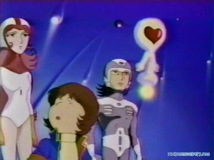 Старое, из середины 80-х годов XX века, аниме. Соответственно, графика не очень похожа на современную, но по ней лучше не судить (тем более что замечание о старой рисовке может относиться лишь к дизайну персонажей, фоны здесь более или менее удачные). Музыка и песни мне понравились. Сюжет довольно глубокомысленный, должен признать. Хотя, конечно, раньше мезолита люди ещё не воевали между собой (по крайней мере, только в это время появляются изображения боёв между людьми), а та стычка звероподобных архантропов мало чем отличается от драки между животными, так что этот упрёк вряд ли можно адресовать именно человечеству, но с остальным можно согласиться. Цитата: Maxthon99 аниме из серии "Галактический Экспресс 999" А я-то думал, почему персонажи этого аниме кажутся мне такими знакомыми! Да и имя Мацумото Лэйдзи должно навести зрителя на соответствующие мысли.