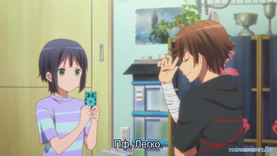 Конечно, приятно, когда к тебе липнет симпатичная девчонка, но в классе есть и другие красотки, с кем можно поговорить не только о черной магии, но и, кхм… о разном. Вот только милашка Рикка уже запала в душу и не отпускает, так и хочется иногда развернуть плечи во всю богатырскую мощь и крикнуть врагам: «Да сгиньте в темном пламени!» Впрочем, общение с другими школьницами показало главному герою, что прекрасный пол вообще любит веселых и интересных парней, даже если тщательно скрывает это, как красавица-староста Синка Нибутани. Короче, Юта, не торопись становиться скучным – настоящий мужчина одинаково хорош и в пределах реального мира, и на просторах Страны Фантазии! ______________ * Полнометражная версия первого сезона аниме "Чудачество любви не помеха", основанного на серии ранобэ.