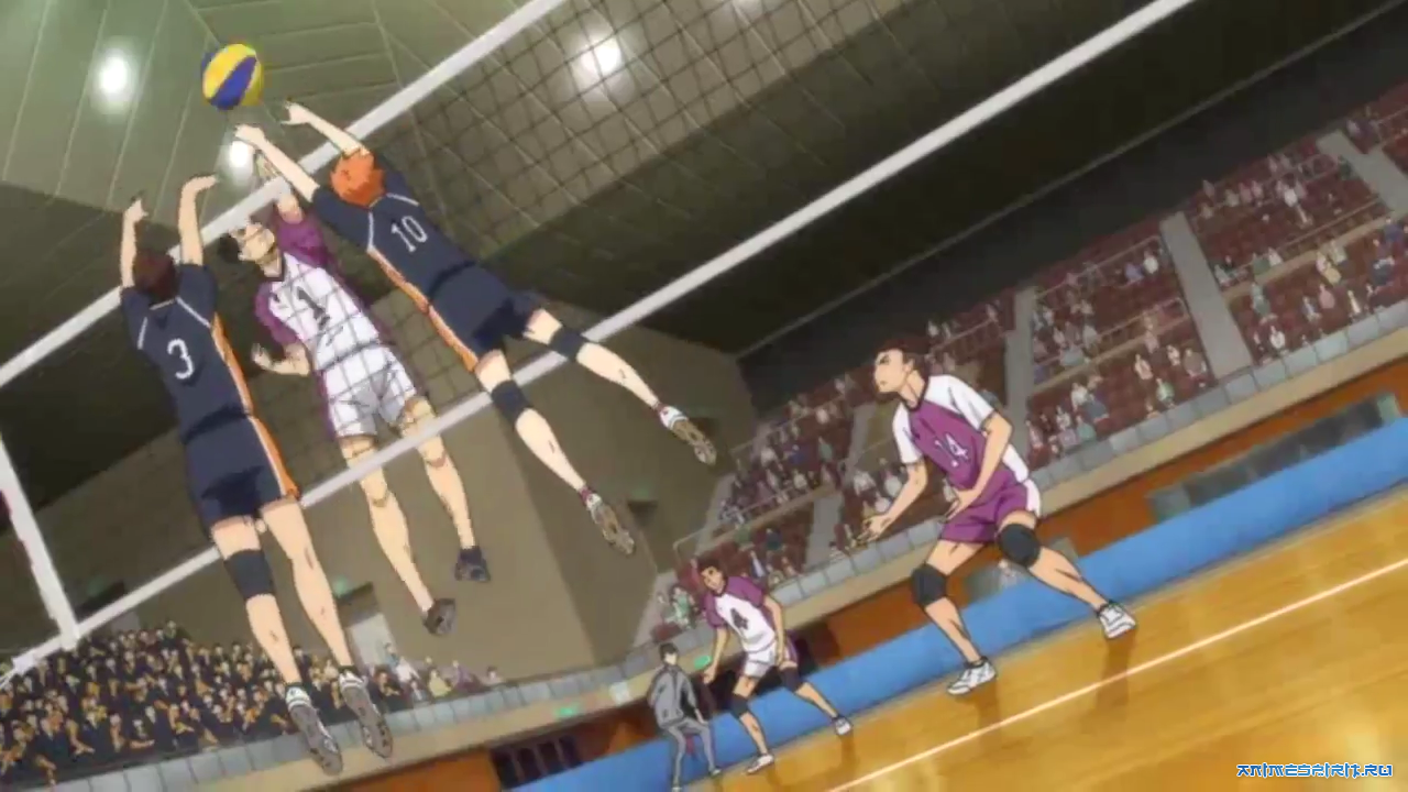 #1 Волейбол [ТВ-1] - ТВ (25 эп.), адаптация манги, 2014#2 Gekijouban Haikyuu!! - п/ф (2 эп.), компиляция ТВ-сериала, 2015#3 Haikyuu!! OVA - OVA (2 эп.), адаптация манги, 2015#4 Волейбол [ТВ-2] - ТВ (25 эп.), продолжение, 2015#5 Haikyuu!! Karasuno Koukou vs Shiratorizawa Gakuen Koukou - ТВ, продолжение, 2016#6 Gekijouban Soushuuhen Haikyuu!! - п/ф (2 эп.), компиляция ТВ-сериала, 2017#7 Волейбол OVA-2 - OVA (1 эп.), адаптация манги, 2017#8 Волейбол OVA-3 - OVA (2 эп.), продолжение, 2019 #9 Волейбол [ТВ-4] - ТВ, продолжение, 2020