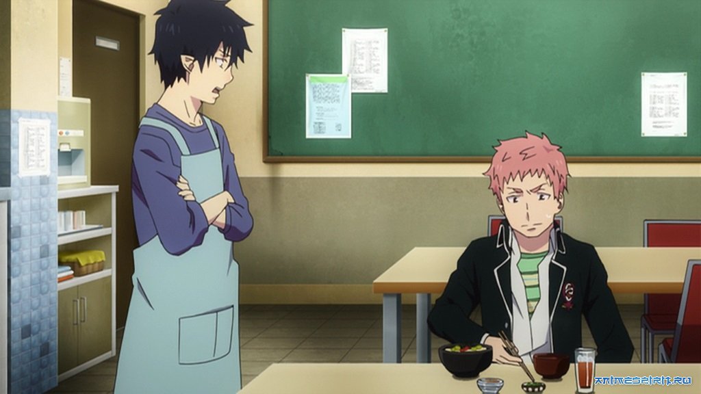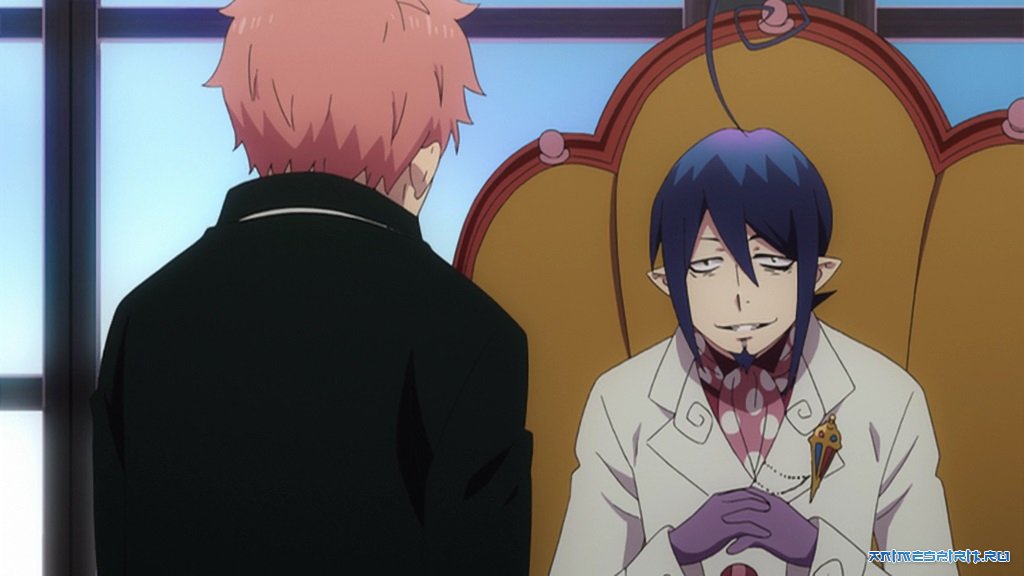 #1 Синий Экзорцист [ТВ] - ТВ (25 эп. + 10 спэшлов), адаптация манги, 2011#2 Синий Экзорцист: Приключения Черныша вдали от дома - спецвыпуск (1 эп.), ответвление сюжета, 2012#3 Синий Экзорцист (фильм) - п/ф, адаптация манги, 2012#4 Синий Экзорцист [ТВ-2] - ТВ, адаптация манги, 2017#5 Синий экзорцист: Змея и яд - OVA (1 эп.), spinoff (ответвление сюжета), 2017#6 Синий экзорцист: Поиграем в шпионов - OVA (1 эп.), spinoff (ответвление сюжета), 2017#7 Синий экзорцист: Сага об «Иллюминатах» Симанэ [ТВ-3] - ТВ, адаптация манги, 2024#8 Синий экзорцист: За снегом [ТВ-4, часть 1] - ТВ, адаптация манги, 2024#9 Синий экзорцист [ТВ-4, часть 2] - ТВ, продолжение, 2025