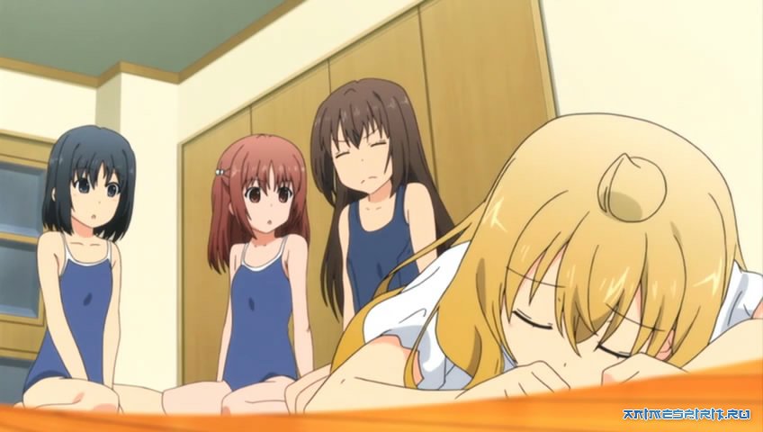 Описание: Еще одним праздником в первой серии стал Новый Год. Все Минами уже выполнили японские новогодние традиции, а именно: сходили к храму, запустили летающего змея, пустили юлу и погадали на счастье. Теперь они просто с подругами отдыхают под теплым катоцу и пьют безалкогольное саке. Только оно на них как-то странно действует. Девочки налились красным цветом и опьянели. Все это свалили на новогоднее настроение, поиграли в прядки и легли баюшки.