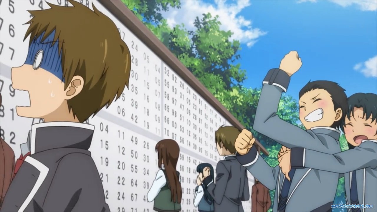 Сюжет всего аниме выгледит так, пару серий экзамены (не одного урока, только хардкор, только экзамен), потом пару серий филеры (в аниме с 12 серий по 15минут...), затем продолжение первых серий аниме, но только с промежутком (ну типа десяток серий вовсе забыли в аниме сделать(пропустили чясть сюжета)). А в целом выгледит так, у сериала более 20 серий по 25мин, но время или бюджета на всё не хватило, и сделали маленькие нарезки с пропуском серий.
