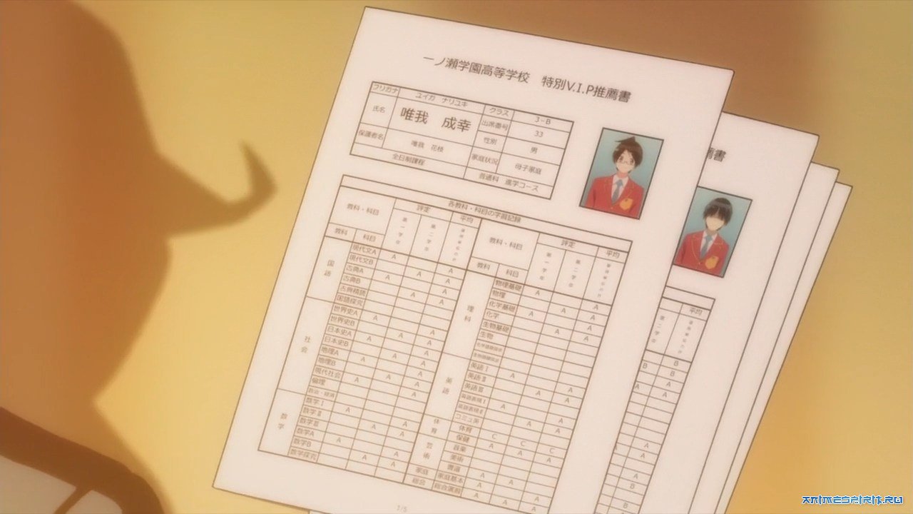 Описание: Юига Нариюки отлично учится, да и оценки у него выше среднего. Он бы вполне мог считать себя одарённым, если бы не два но. А точнее две. Огата Ризу — математический гений, чей мозг способен просчитать все формулы. Фурухаши Фумино — мастер слова, чьи произведения могут затронуть даже самое чёрствое сердце. Обе они не дают нашему герою стать первым в школе. А зачем ему это? Он хочет попасть в уникальную программу, названную "Особая VIP рекомендация". Она позволит ему поступить в абсолютно любой университет страны безо всяких помех. И ему выпадает шанс попасть в эту программу. Только вот есть одно условие - нужно стать репетитором этих двух гениев.