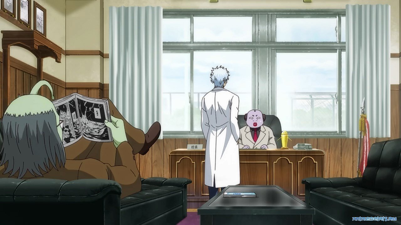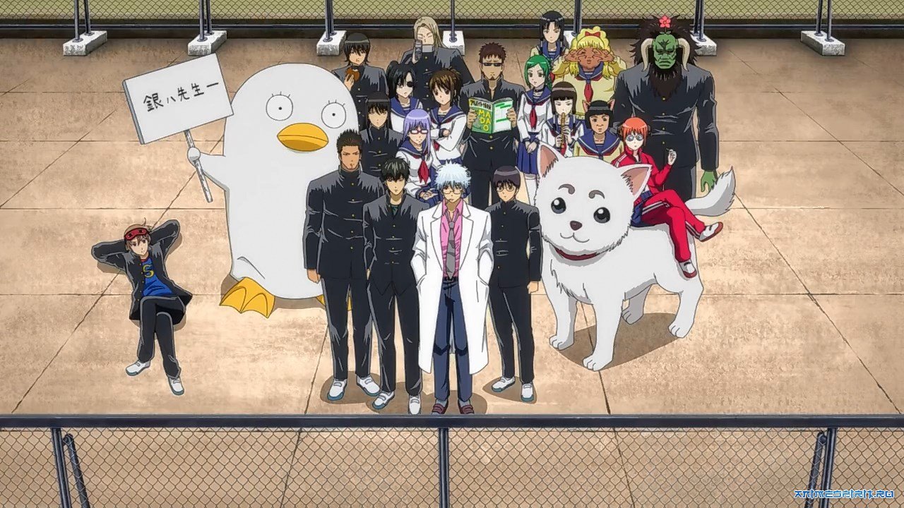 Описание: Это одновременно и спин-офф, и забавная пародия на Гинтаму. По сюжету мы перенесёмся в среднюю школу, где Гинтоки предстанет в роли эксцентричного классного руководителя, а его учениками станут четыре основных Шинсенгуми и Кихэйтай. Если вам это всё ещё не кажется абсурдным, то другие герои вселенной Гинтамы, такие как Отосэ, Сакамото, Мацудайра, Цукуё, Дзэндзо и Гэнгай возьмут на себя роли других учителей. А во главе всего этого балагана встанет, разумеется, принц Хата. В общем, как вы уже поняли, уроки нас ждут крайне странные, но при этом не менее интересные.