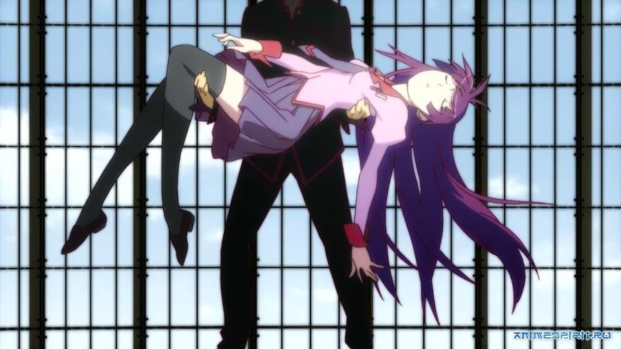 Но и наш герой оказался не лыком шит. Узнав, что над девушкой подшутил то ли бог, то ли демон, Арараги в свою очередь повинился, что недавно вампиром был, пошаливал, да выручил то ли святой человек, то ли старый хиппи, а звать его Мэмэ Осино. Короче, убедил он девушку, что хуже не будет, а помочь ей могут, и повел ее к отшельнику в гости, на заброшенную стройку. Ведь у героев работа такая – девушкам в беде помогать! А их, девушек, в школе так много…