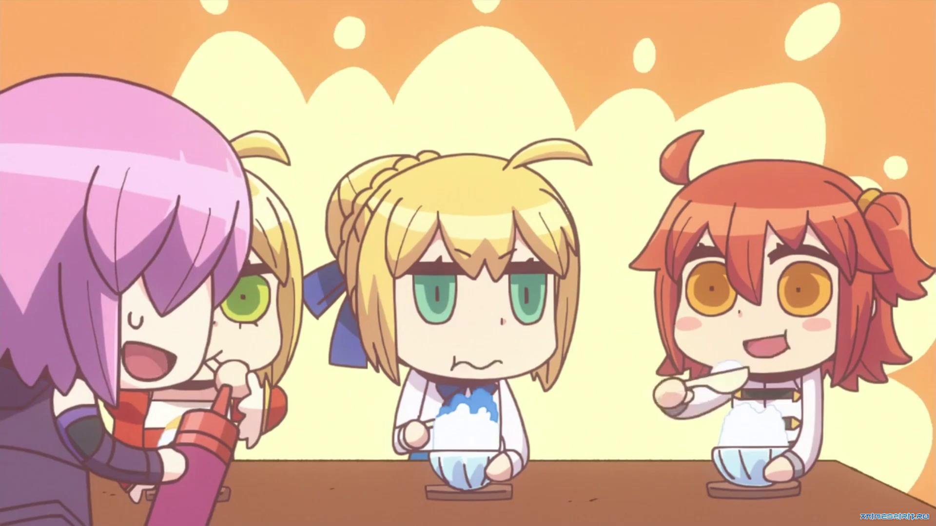 Описание: Экранизация нескольких глав манги «Судьба/Великий приказ: В манге всё яснее!» от иллюстратора Riyo, изначально являвшейся веб-мангой, выходящей на официальном сайте игры и посвящённой высмеиванию внутриигровых механик, гачи, технических неполадок и других неотъемлемых составляющих игры «Fate/Grand Order».