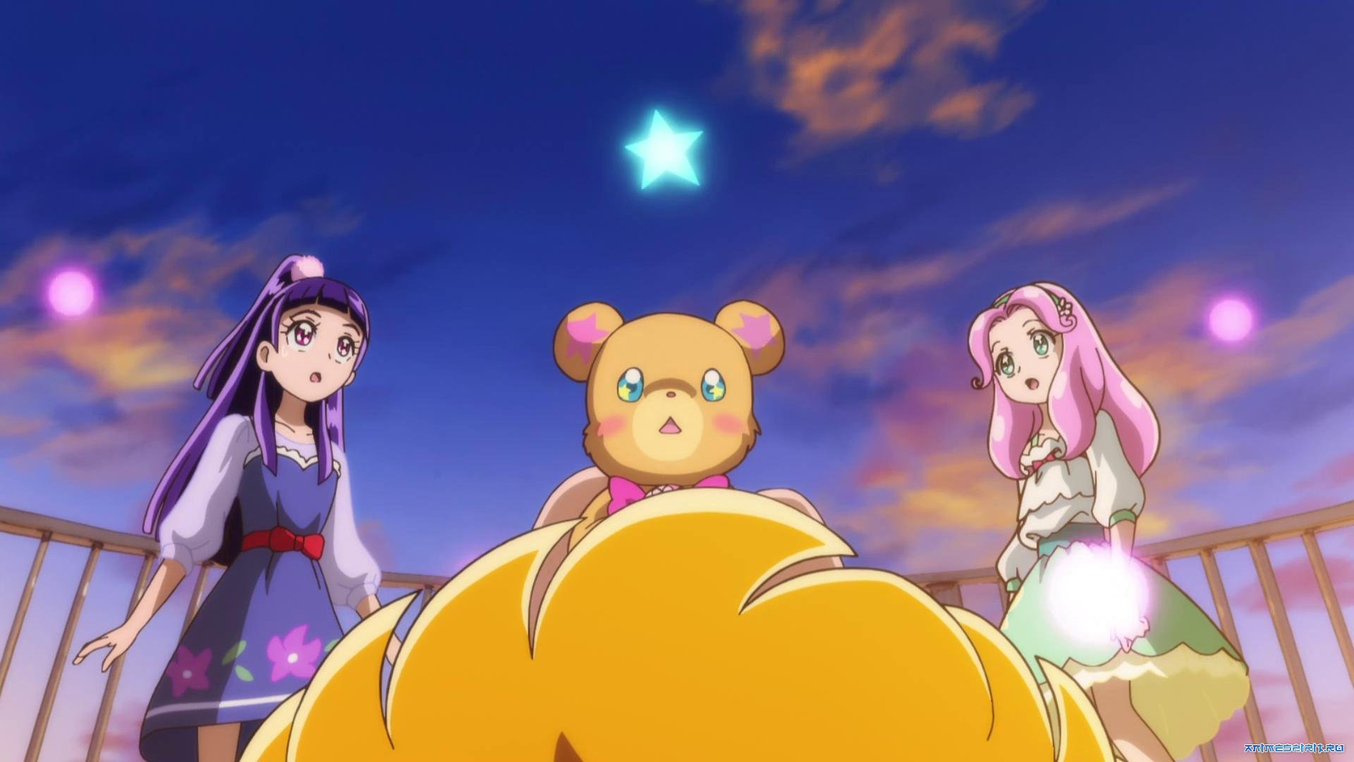 Описание: В Волшебном мире проходит столетний Большой Волшебный фестиваль. Этот фестиваль празднует возвращение Камня желаний, исполняющего желание одному из избранных Камнем. Когда Мофурун выбирается для исполнения желания камнем, появляется могущественный медведь по имени Темная Материя и похищает Камень желаний и Мофурун! Темная Материя хочет заставить Мофуруна пожелать уничтожения всех магов. Неспособные превращаться в ПуриКюа, Мираи, Рико и Хаа отправились спасать Мофоруна.