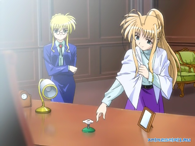 #01 Сердечный треугольник OVA-1 - OVA (5 эп.), адаптация игры, 2000 #02 Сердечный треугольник OVA-2 - OAV (4 эп.), адаптация игры, 2003 год#03 Лиричная волшебница Наноха [ТВ] - ТВ (13 эп.), spinoff (ответвление сюжета), 2004 год#04 Лиричная Волшебница Наноха: Асы - ТВ (13 эп.), продолжение, 2005 год#05 Лиричная Волшебница Наноха: Искатели - ТВ (26 эп.), продолжение, 2007 год#06 Лиричная волшебница Наноха (фильм первый) - п/ф, ремейк, 2010 год#07 Лиричная волшебница Наноха (фильм второй) - п/ф, альтернативная версия, 2012#08 Лиричная волшебница Наноха: Вивио - ТВ (12 эп. + эп.-коллаж), продолжение, 2015 #09 Решающий удар! - ТВ (12 эп. + 3 спэшла), продолжение, 2016 #10 Лиричная волшебница Наноха: Отражение - п/ф, продолжение, 2017 #11 Лиричная волшебница Наноха: Детонация - п/ф, продолжение, 2018