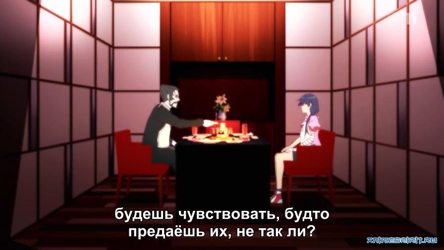 Не ожидала встретить Арараги, но это было приятно (даже с убогой причёской). В целом, я, кажется, прониклась душой к этой истории. Она поинтереснее кошки и второго сезона, хоть изобилует бредовыми вставками и психоделичными фонами... но я вьехала, что Монстров в принципе нужно больше слушать, чем смотреть. Всё-таки, это экранизация новелл, а не манги, и здесь всё решают монологи, а не действия. Действия показывают лишь то, что хотят видеть парни - тисканье двух девочек, обнажёнка и блестящие задницы.