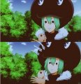 Правду говорят: "Хочешь узнать человека - дай ему власть". Вот и тут - очередное доказательство этого... Милая и добрая сестрёнка, получив власть над братом, превращается в нечто мерзкое и отвратительное, упивающееся своей властью и чмырящее своего брата при первом удобном случае... Этот персонаж, в общем, не понравился категорически. Хотя, к чести мангаки и режиссёра, законы жанра они соблюли. Не может в аниме девушка с красными волосами собранными в типичную причёску цундере, и с красными глазами быть доброй и милой... Парня откровенно жалко, ведь он правда переживал за сестру, бежал к ней вместо того чтоб отсидеться в убежище, хотел спасти... и получил ушат даже не холодной воды, а вонючих помоев прямо в лицо в виде унижений и оскорблений от сестры... В общем, не понравилось категорически... |