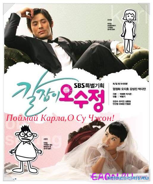 Описание: Типичный ботаник (ужасный толстяк) Ко Ман Су и королева красоты О Су Чжон готовятся к свадьбе, но накануне Ман Су проваливает экзамен по юридическому праву, в результате чего невеста сбегает со свадьбы и улетает в Нью-Йорк. Убитый горем жених решает тоже отправиться в Америку... Через 8 лет Ман Су возвращается в Корею уже всемирноизвестным гольфистом, притом красавчиком. В то время как Су Чжон старается подцепить богатенького мужа, но фактически остается старой девой. Узнав о возвращении Ман Су, она, конечно, решает взять его в оборот, но и Ман Су, наученный горьким опытом, просто так не сдастся... На самом деле дорама оч интересная,поначалу я думала фигня,а потом втянулась)) В ролях: * Oh Ji Ho в роли Ко Ман Су / Карл * Uhm Jung Hwa в роли О Су Чжон * Kang Sung Jin в роли Чжон У Так * Park Da An в роли Юк Дэ Сун Добавлено по заказу Отаку1