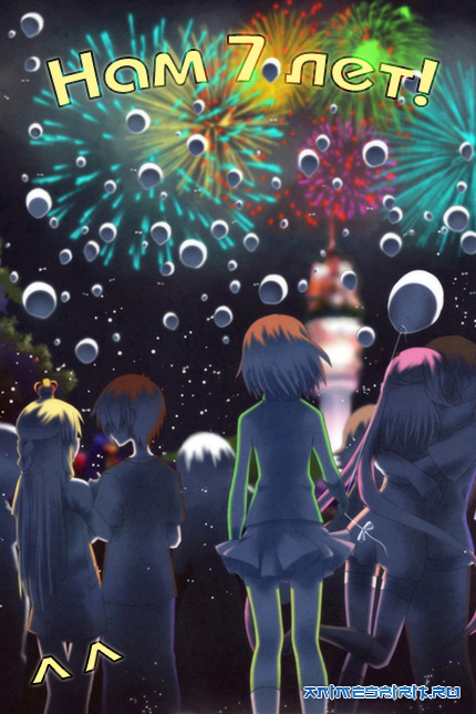 Описание:  В марте, 18 числа 2009 года появился на свет наш AnimeSpirit. 20 марта он уже встал на ножки и сделал несколько неуверенных, но целеустремленных шагов навстречу своим первым пользователям. Постепенно приобретая новых жителей, Spirit завоевал передовое место среди аниме-кинотеатров онлайн и по объему аниме-базы, и по количеству его ценителей. В насыщенной жизни нашего сайта были взлеты, случались и падения. Всех событий не перечесть, но несмотря ни на что, мы продолжаем заниматься тем делом, что нравится нам, и надеемся, что это нравится и вам. Сегодня AnimeSpirit исполнилось 7 лет. Это не юбилей, но не менее значительная дата. Семь - счастливое и мистическое число, а значит этот год в жизни сайта будет самым необычным и сказочно богатым на радостные события.