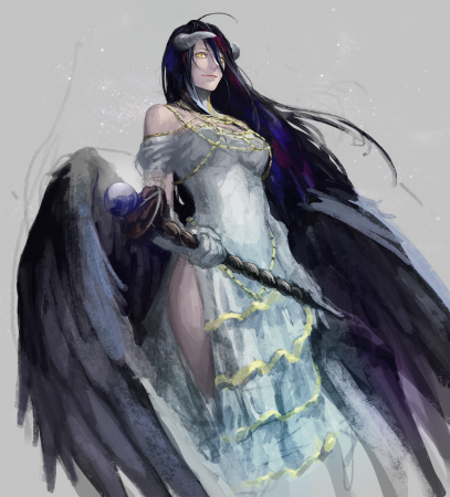 | Метки: Повелитель, Альбедо, Девушка, Суккуб, Платье, Крылья, Посох, Перчатки |