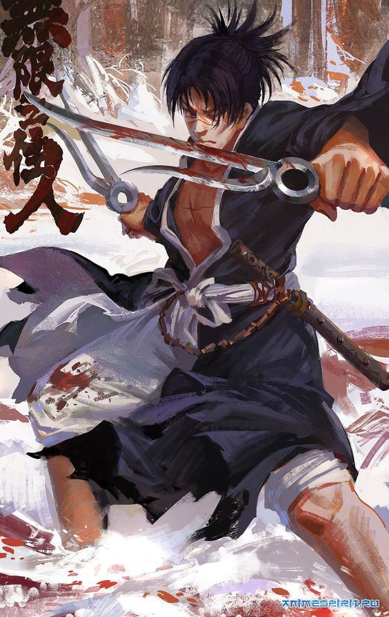 Описание: Мандзи — убийца ста самураев и бессмертный мечник, уставший от своего проклятия. После гибели собственной сестры он делает 800-летней монахине, запустившей в его тело не позволяющих расстаться с жизнью «кровяных червей», предложение: дабы искупить грехи, он обещает убить на своём пути тысячу злодеев. И как только клятва будет исполнена, Мандзи вернётся его смертность, а черви навсегда оставят его тело. В своём путешествии он встречает молодую девушку Рин, жаждущую мести за убийство всей своей семьи и не знающую куда податься. Странствуя вместе с ней, бесконечно сражающийся Мандзи продолжает двигаться к собственной цели, не оставляя надежды найти себе «покой». AniLibria: Hekomi, Sharon AniDUB:Sergei Vasya, Oriko