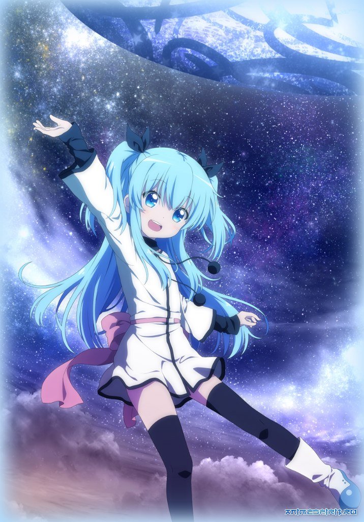 Описание: 12-летняя Нонока Комия вернулась в город, откуда когда-то уехала после смерти матери. Темнозерск – город небольшой, но знаменитый тем, что уже семь лет над озером висит… самая настоящая летающая тарелка! С другой стороны, висит и висит, никого же не трогает, и местная жизнь после изначального ажиотажа и наплыва туристов давно вернулась в прежнее тихое русло. Так что хозяйственная девушка принялась разбирать вещи – и столкнулась в собственной комнате с синеволосой незнакомкой по имени Ноэль, которая, наоборот, утверждает, что хорошо с ней знакома! А кроме малышки Ноэль, в скором времени Нонока познакомилась уже со своими ровесниками - энергичной Юдзуки (что в вечной ссоре с собственным братом-близнецом Сотой), дружелюбной Кохару и на редкость нелюдимой Сионэ. Слово за словом, поступок за поступком – и выяснилось, что Комия одним своим появлением разворошила на редкость запутанный клубок судеб и воспоминаний, связавший всех юных героев этой истории. Из такого положения есть два выхода: фантастический – если ребята сами разберутся, и реалистический – когда вся надежда на летающее блюдце! Название сериала дословно значит «небесный метод» и подразумевает достижение целей с помощью внешнего вмешательства. Темное озеро (или озеро Кирия) создано на основе озера Тоя на острое Хоккайдо. Темнозерск – это, соответственно, близлежащий город Тояко, где проходил саммит «Большой восьмерки» 2008 года. GreyMoon & Aska & Hekomi & NesTea