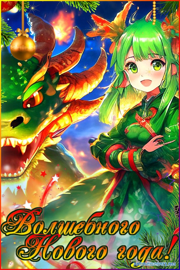 Описание: Дорогие Анимешники! Вылупляется новый год а вместе с ним наступает волшебный, сказочный, самый долгожданный праздник в году. От всей души поздравляем с наступающим Новым годом, желаем мира, добра, поддержки близких, взаимопонимания в семье, счастья, радости и, конечно, крепкого здоровья. Пусть этот непредсказуемый год станет началом чего-то нового и прекрасного. Пусть этот год подарит всё то, о чём каждый мечтает. Пусть он откроет двери в чудесный мир счастья, улыбок, тепла и уюта, среди которых не будет места печали и разочарованию. Желаем, чтобы этот год стал по-настоящему волшебным, чтобы он смог бы подарить столько приятных впечатлений и радостных моментов, сколько только смогли бы пожелать. И пусть этот год станет незабываемым и принесет только хорошие события, подарит яркие, душевные воспоминания. С наступающим новым годом! В праздник необыкновенный Мир дракона в гости ждет. И на Спирит непременно Тоже этот зверь придет.