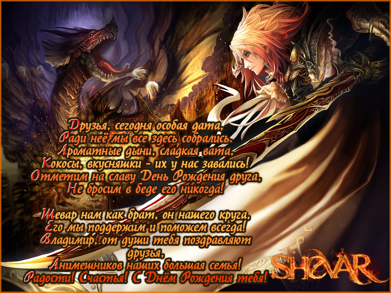 Описание: Дорогой, Бор Тол! Желаем чтобы жизнь твоя была светлой, как ясный солнечный день, полной, как бокал с шампанским, безоблачной, как небо над пустыней. И пусть, как звезды в ночном небе, всегда горят огоньки в окнах твоих друзей и родных, огоньки надежды. Будь здоров, счастлив и удачлив! От всей души – счастья, исполнения желаний! Пусть жизнь, как яркая мозаика, складывается из светлых красок радости, незабываемых событий, а каждый новый день дарит удачу и прекрасное настроение! Желаем быть всегда в хорошем настроении, верить в свои силы, стремиться к воплощению своих мечтаний в реальность. Пусть каждый твой день позволяет реализовывать задуманные планы, пусть каждое твое стремление приводит к несомненному успеху и процветанию! С Днем Рождения! Слава тебе, добрый сказочник Бор! В день, понимаешь, Рождения твой