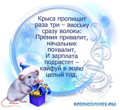 От всей души наш дружный и скромный коллектив поздравляет вас с наступающим годом Крысы. Пускай этот красивый праздник внесет в жизнь яркие перемены, которые сделают ее богаче и насыщеннее. Пускай не пугают крутые жизненные виражи – они все будут вести к успеху! Загадывайте поскорее желание, и оно под бой курантов обязательно исполнится! Пусть новый год будет полон перспектив, пусть каждый его день будет насыщенным и плодотворным, пусть в жизни вас ждут большие свершения и победы, пусть в семьях ваших будет уют и благодать. Желаем много радости и смеха, улыбок, искренности и добра! Пусть счастьем и достатком наполняются ваши дома. Будьте здоровы, всегда с великолепным настроением, и пусть в Новом году все самые сокровенные мечты исполнятся! С праздником, друзья! Пусть проблемы все уходят, С ними – боль и безнадега! Вместе с счастьем у ворот, К нам стучится – Новый год! Планы новые, идеи, Достигаем новой цели! Много разных достижений, Только грамотных решений! И доходов Вам больших, Дней хороших, трудовых! Дома – радости, тепла, Много всякого добра!