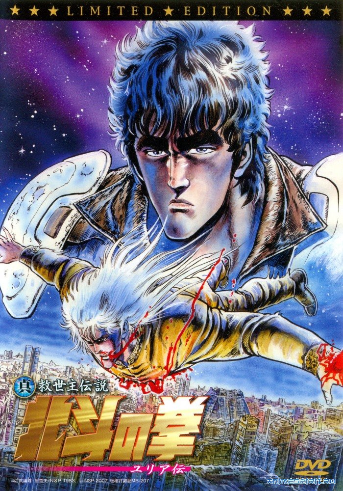 Описание: Легенда о Юрии — кто она такая и какова её судьба, о молодости Кенширо и о том как он стал приемником. #01 Кулак Северной Звезды [ТВ-1] - ТВ (109 эп.), адаптация манги, 1984 #02 Кулак Северной Звезды - Фильм (1986) - п/ф, ремейк, 1986#03 Кулак Северной Звезды [ТВ-2] - ТВ (43 эп.), продолжение, 1987 #04 Новый Кулак Северной Звезды - OAV (3 эп.), продолжение, 2003#05 Кулак Северной звезды: Легенда о героях - к/ф, адаптация манги, 2006#06 Кулак Северной Звезды - Легенда о Рао: Мученик любви - Фильм 1 - п/ф, адаптация манги, 2006#07 Кулак Северной Звезды - Легенда о Юрии - Фильм 2 , адаптация манги, 2007#08 Кулак Северной Звезды - Легенда о Рао: Яростная схватка - Фильм 3 - п/ф, адаптация манги, 2007#09 Кулак Северной Звезды - Легенда о Токи - Фильм 4, адаптация манги, 2008#10 Кулак Северной Звезды - Легенда о Кенширо: Начало - Фильм 5 - п/ф, адаптация манги, 2008#11 Кулак Северной Звезды [ТВ-3] - ТВ (13 эп.), адаптация манги, 2008#12 Кулак Синего Неба - ТВ (26 эп.), предыстория, 2006#13 DD Hokuto no Ken - ТВ (12 эп.), пародия, 2011#14 DD Hokuto no Ken (2013) - ТВ (13 эп.), адаптация пародийной манги, 2013 #15 DD Hokuto no Ken 2: Ichigo Aji+ - ТВ (12 эп.), адаптация пародийной манги, 2015 #16 Кулак Синего Неба: Перерождение - Web, адаптация манги, 2018#17 Кулак Синего Неба: Перерождение (2018) - Web, продолжение, 2018
