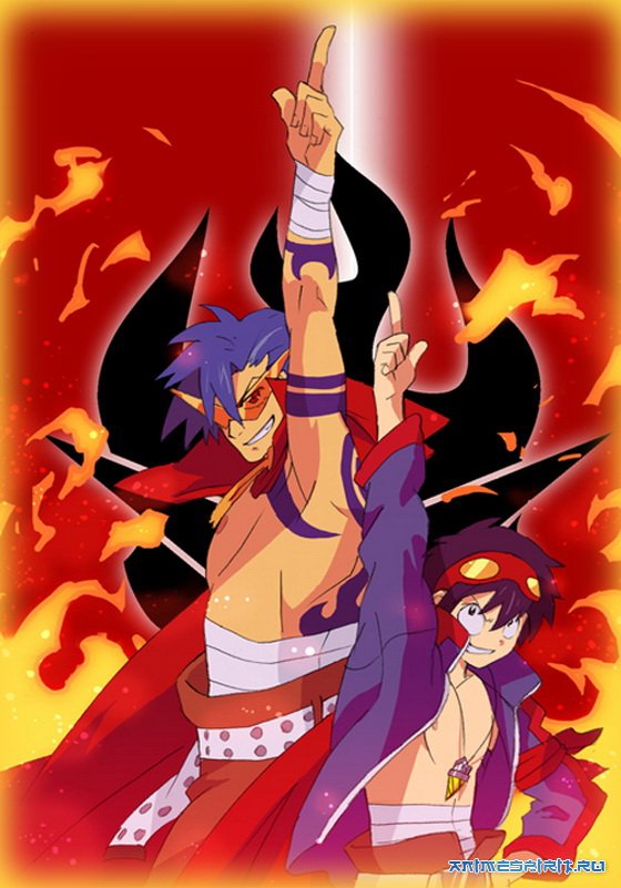 Описание: Сотни лет люди живут в глубоких пещерах, в постоянном страхе перед землетрясениями и обвалами. В одной из таких подземных деревень живет мальчик Симон и его «духовный наставник» — молодой парень Камина. Камина верит, что наверху есть другой мир, без стен и потолков; его мечта — попасть туда. Но его мечты остаются пустыми фантазиями, пока в один прекрасный день Симон случайно не находит дрель... вернее, ключ от странного железного лица в толще земли. В этот же день происходит землетрясение, и потолок пещеры рушится — так начинается поистине эпическое приключение Симона, Камины и их компаньонов в новом для них мире: мире под открытым небом огромной Вселенной. * Краткий пересказ 2-ой половины одного из самых эпичных аниме-сериалов, перемонтированный и с новыми сценами.
