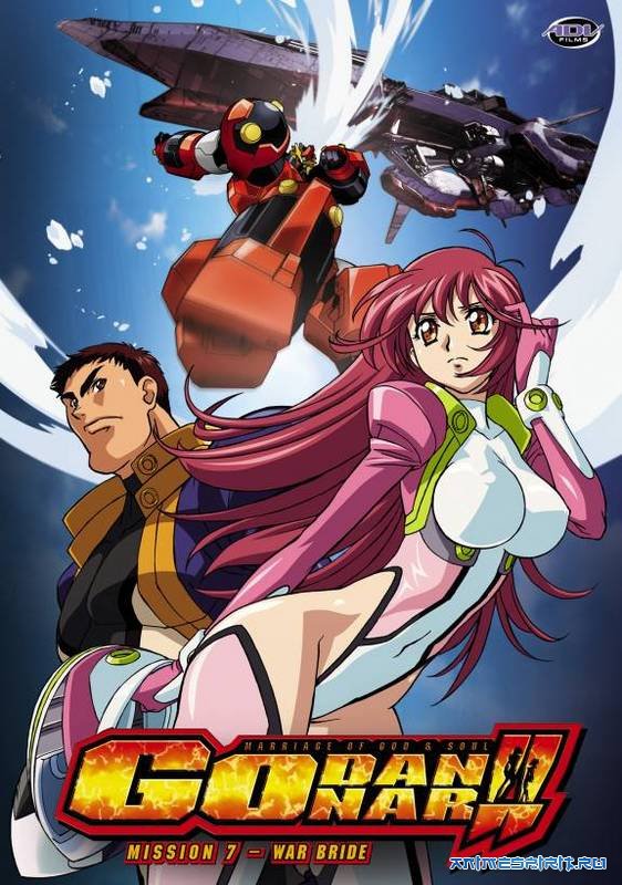 Описание: Godannar - современная юмористическая патетика о сражениях на огромных человекообразных боевых роботах. Начинается эта история с бракосочетания ^^ Но прямо из под венца жениха срочно вызывают на базу! На город напало чудовище, а он - пилот робота. Его долг защитить жителей! Но... человек не может победить в одиночку! В решающий момент ему на помощь приходит жена, случайно обнаружившая спрятанного под городским кладбищем гигантского робота. Чтобы спасти любимого она справляется с управлением и... Помните классические объединение нескольких роботов в одного жутко крутого? Так вот - новобрачные сливаются в единое существо! Управляя роботом Godannar из одной кабины, они одолевают врага. Героям предстоят тренировки, сражения и семейная жизнь в свободное от битв время. Перезалито 22.10.2012г