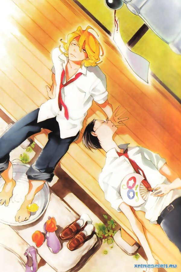 Описание: Умница и гордость школы Садзёу Рихито нем как рыба на уроке музыки, однако после занятий старательно разучивает песню. Не то, чтоб это сильно волновало его одноклассника Кусакабэ, но всё-таки. Когда Кусакабэ выясняет, что у Садзёу проблемы со зрением, поэтому он не видит слов, написанных на доске, да и с нотной грамотой у него не очень, парень по доброте душевной решает помочь незадачливому отличнику. Чем закончился альтруистический порыв, и причем здесь учитель музыки рассказывается в цикле наимилейших произведений Накамуры Асумико. AniDub: Azazel, Jar, Rudoshka, Ruri, SHIROYA, Sergei Vasya