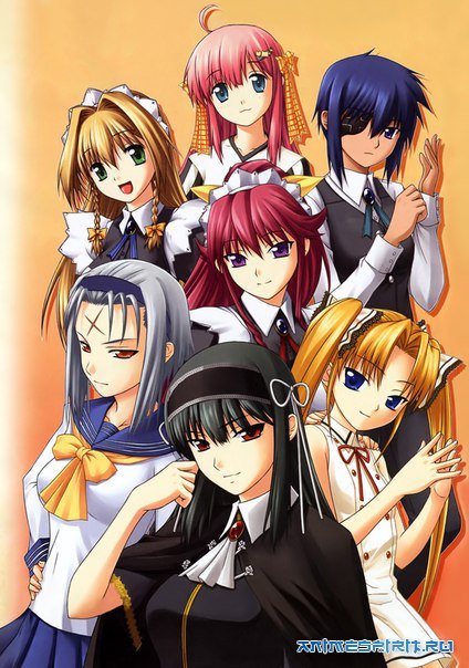 Описание: Бедные, но гордые брат и сестра Михато и Рэн Уэсуги бегут от пьяницы-отца из глухой провинции в большой город в поисках счастья и новой жизни. Разделившись, они отправляются на поиски работы, и, конечно же, честный и мужественный Рэн сразу же выручает из беды светловолосую «лоли» с двумя длинными хвостиками и наплевательским отношением ко всему остальному миру. Вот так и попадают наши герои в господский дом, поступая в услужение к трем сестрам Куондзи. Старшая – Синра – талантливый дирижер, обожает точно так же манипулировать всеми окружающими, девушка абсолютно без комплексов. Средняя, уже упомянутая Мию – семейный гений с IQ 240, девушка с университетским образованием, мягко говоря, не выглядящая на свои годы. А есть еще школьница Юмэ, которая мечтает хоть чем-то выделиться на фоне блестящих старших сестер. Разумеется, в имении Куондзи уже есть суровый дворецкий, вспыльчивая горничная, верная телохранительница, и все живут с хозяйками большой и дружной семьей. Кто бы сомневался, что новенькие, пройдя суровые испытания и забавные приключения, найдут в новой семье свое место, а по дороге будут обыграны все штампы из жанра «слуг и господ» со ссылками на множество других аниме и даже на японскую историю?