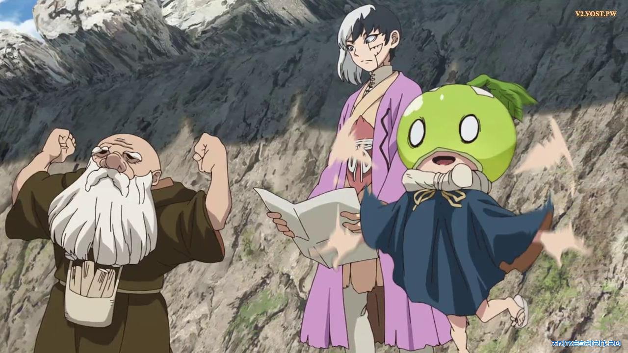 Описание: В один роковой день всё человечество превратилось в камень. Много тысячелетий спустя старшеклассник Тайдзю освобождается от окаменения и оказывается в окружении статуй. Однако он не одинок: его другу Сэнку также удалось сбросить каменную оболочку, и теперь, используя научные знания, они начинают восстанавливать былую цивилизацию.